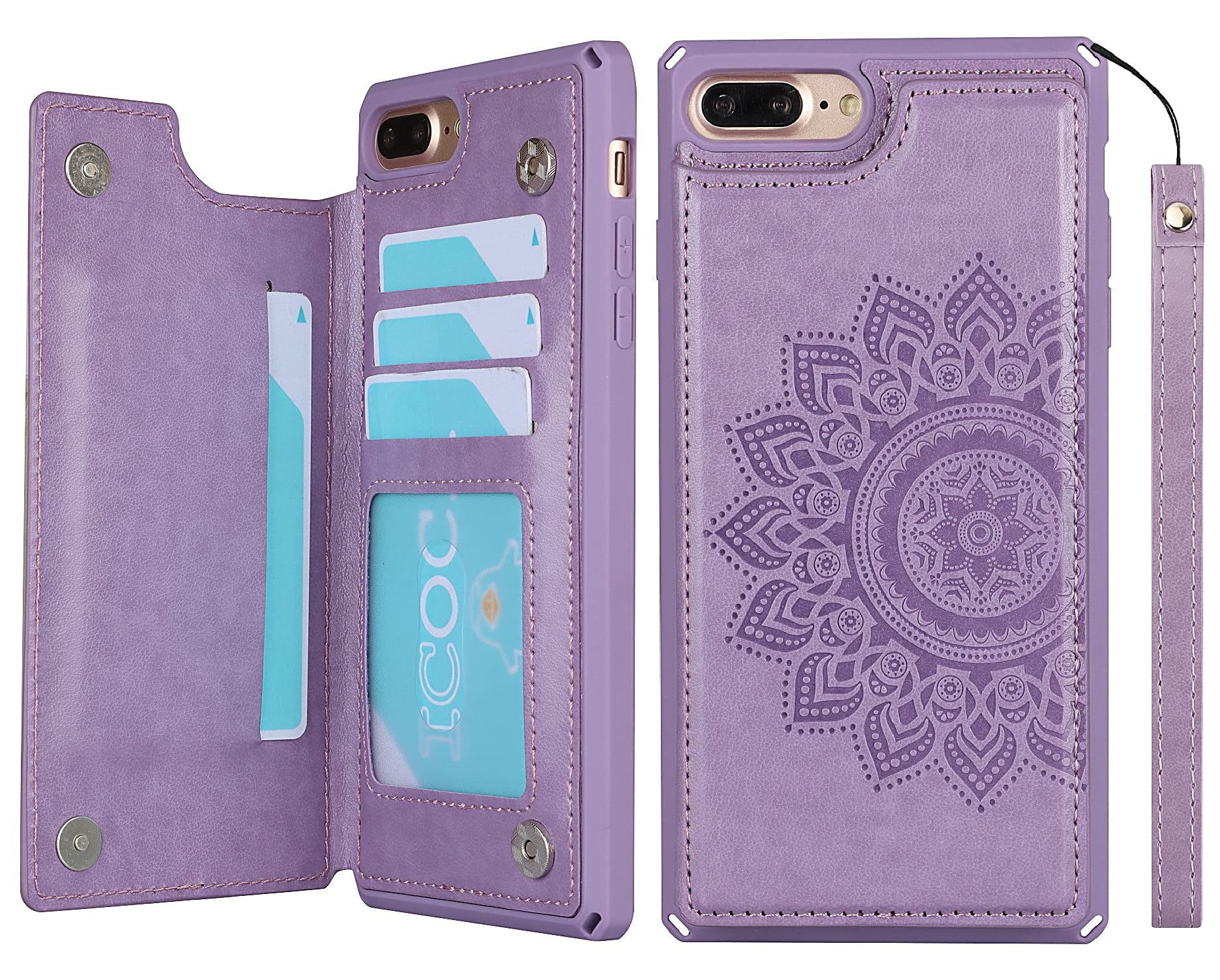 Amazon Com Icovercase For Iphone 8 Plus7 Plus Wallet Case With Card Slots Holder Stand Rfid Blocking Leather Kickstand Magnetic Shockproof Case With Wrist Strap For Men Women Mandala Purple M Purple Cell